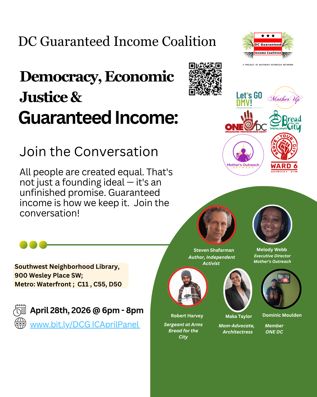 Zoom MeetingJoin the DC Guaranteed Income Coalition for our monthly general meeting. We’ll share updates, collaborate on upcoming projects, and continue building momentum for guaranteed income in DC. RSVP Here.